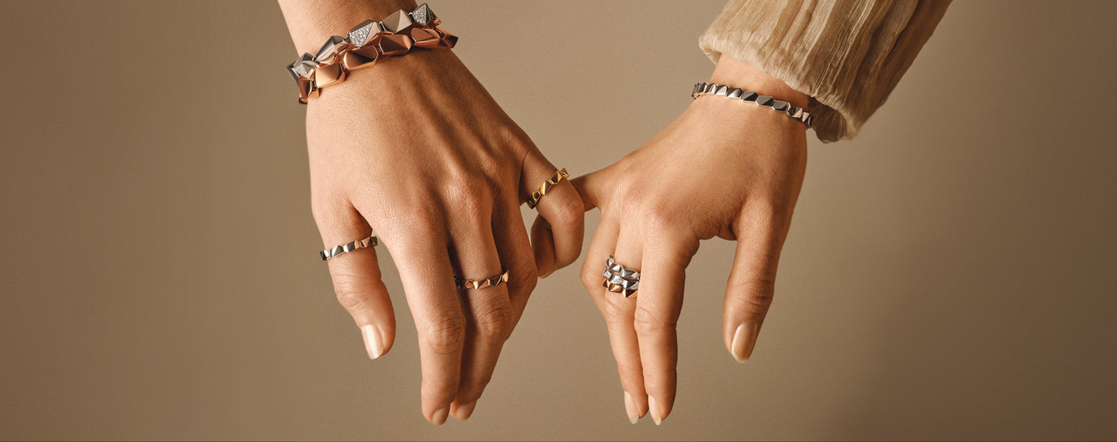 Bricks empowers you every single day to express your individuality and personality – and connect with others. Wear bold Bricks jewellery solo or combine it with your favourite pieces – you will always curate your very own look. Mix & Match to elevate and build up your style and pair white, rose as well as yellow gold. Celebrate the art of togetherness and let the unique Bricks shape become part of your look. An individual style that connects and resonates with your vibe, your voice and your friends.